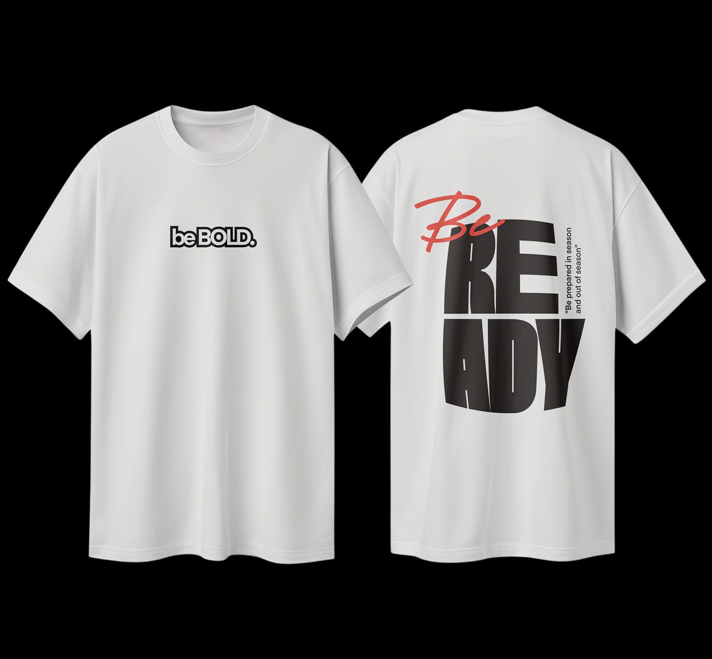 Opportunity doesn’t knock, it finds those who are ready. The beREADY tee is for those who understand that preparation is power. Inspired by the timeless call to “Be prepared in season and out of season,” this shirt is your reminder to stay equipped, stay alert, and stay faithful — even when no one’s watching.